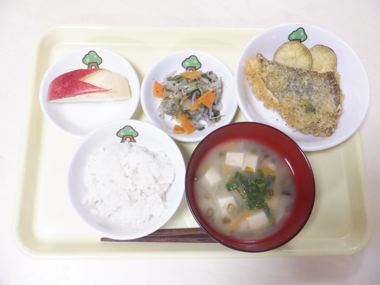 大分県大分市大字横尾1986-1 097-528-7890 主菜:魚の香草パン粉揚げ 2025年 9月 26日 魚の香草パン粉揚げ 粉吹きさつま芋 もやしのゆかり和え 味噌汁 リンゴ 黒糖ラスク 牛乳 最近の今日の給食 主菜:団子汁 2025年 12月 6日 主菜:魚の竜田揚げ 2025年 12月 5日 主菜:けんちん煮 2025年 12月 4日 主菜:チーズ入りオムレツ 2025年 12月 3日 主菜:肉じゃが 2025年 12月 2日 主菜:豚肉のマーマレード焼き 2025年 12月 1日 一覧を見る