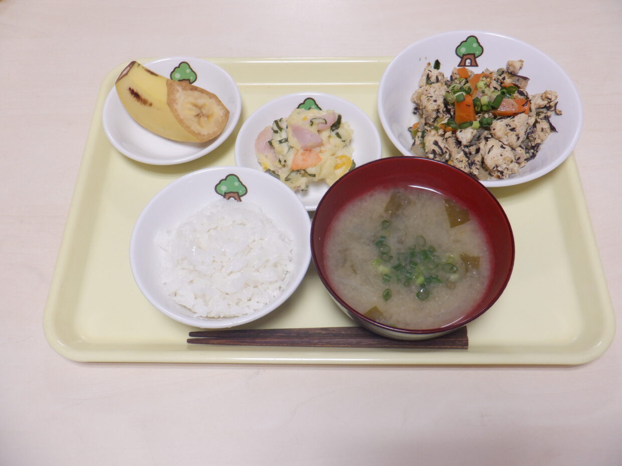 大分県大分市大字横尾1986-1 097-528-7890 主菜:ひじき入り炒り豆腐 2025年 10月 21日 ひじき入り炒り豆腐 ポテトサラダ 味噌汁 バナナ 豆乳まんじゅう 牛乳 最近の今日の給食 主菜:ひじき入り炒り豆腐 2025年 10月 21日 主菜:団子入り中華スープ 2025年 10月 20日 主菜:ハヤシライス 2025年 10月 18日 主菜:豚カツ 2025年 10月 16日 主菜:南瓜シチュー 2025年 10月 15日 主菜:魚のオニオンマヨ焼き 2025年 10月 14日 一覧を見る