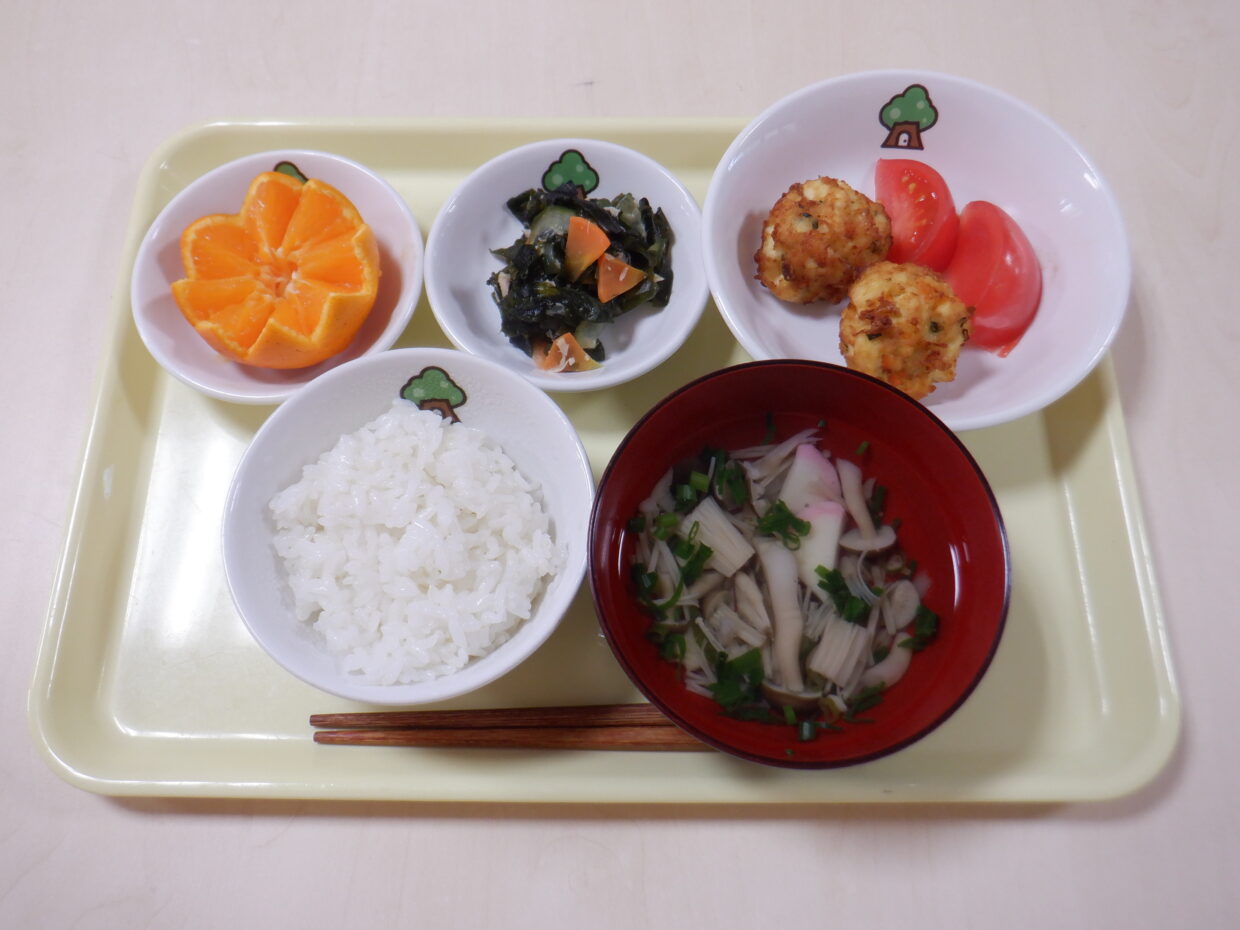 大分県大分市大字横尾1986-1 097-528-7890 主菜:豆腐のふわふわ揚げ 2026年 1月 23日 豆腐のふわふわ揚げ トマト ツナとワカメの酢の物 すまし汁 ミカン じゃこパンせんべい 牛乳 最近の今日の給食 主菜:豆腐のふわふわ揚げ 2026年 1月 23日 主菜:魚のソース煮 2026年 1月 22日 主菜:筑前煮 2026年 1月 21日 主菜:カルシウム卵焼き 2026年 1月 20日 主菜:魚のチャンチャン焼き 2026年 1月 19日 主菜:トリニラ丼 2026年 1月 17日 一覧を見る