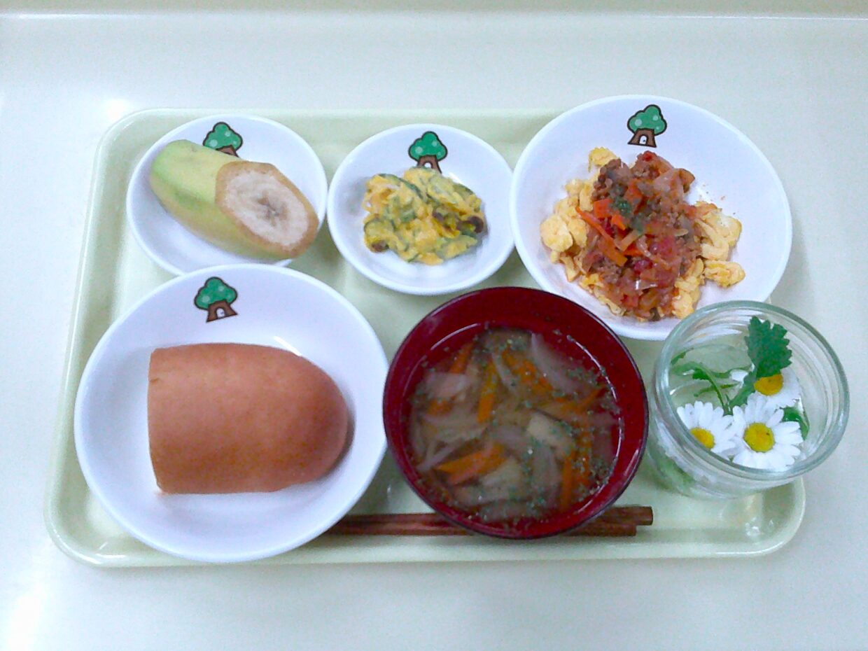 主菜:炒り卵のミートソースかけ