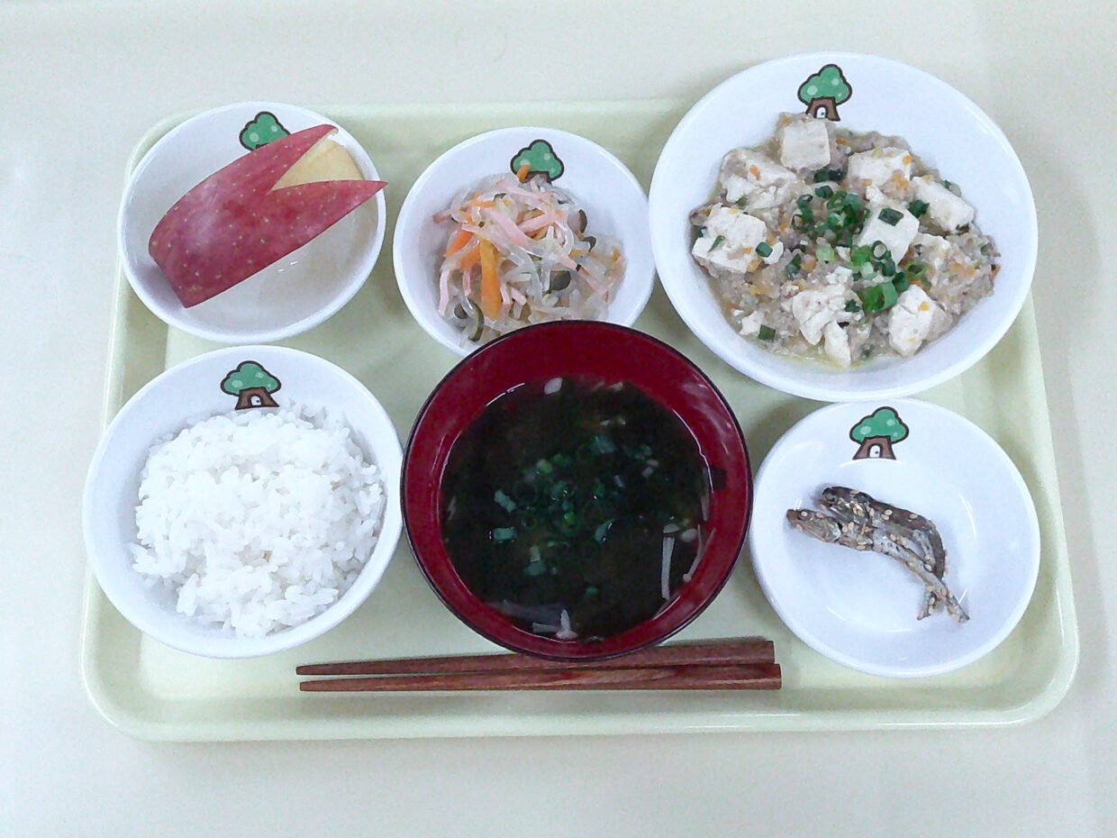 大分県大分市大字横尾1986-1 097-528-7890 主菜:麻婆豆腐 2026年 4月 1日 麻婆豆腐 春雨サラダ 甘辛いりこ ワカメスープ リンゴ 苺のヨーグルトムース 牛乳 ※本日は進級祝いで苺を使用した【苺のムース】でした。 皆さんおめでとうございます。一年間よろしくお願いいたします。 最近の今日の給食 主菜:麻婆豆腐 2026年 4月 1日 主菜:魚のソース煮 2026年 3月 31日 主菜:すき焼き風煮 2026年 3月 30日 主菜:ハヤシライス 2026年 3月 28日 主菜:魚のフライ 2026年 3月 27日 主菜:ポークビーンズ 2026年 3月 26日 一覧を見る