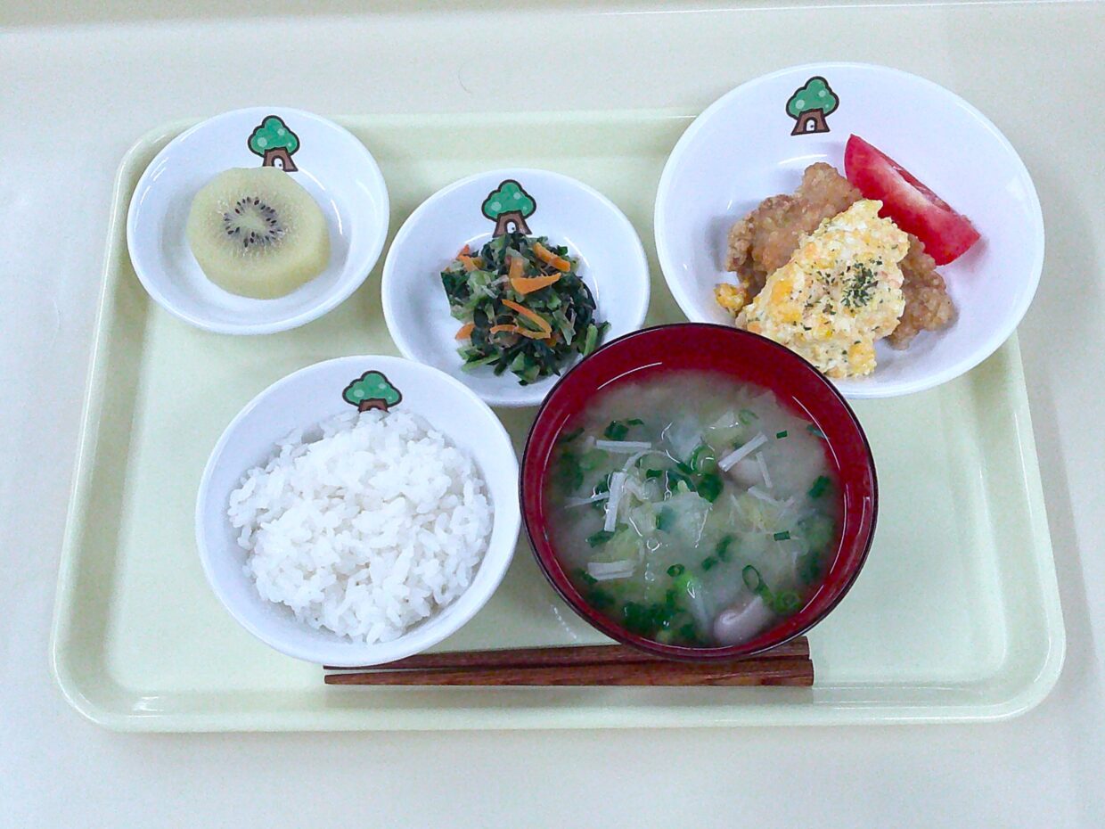 大分県大分市大字横尾1986-1 097-528-7890 主菜:チキン南蛮 2026年 4月 10日 チキン南蛮 トマト 小松菜のおかか蒸し 味噌汁 キウイ ココアちんすこう 牛乳 最近の今日の給食 主菜:チキン南蛮 2026年 4月 10日 主菜:煮込みハンバーグ 2026年 4月 9日 主菜:豆腐の五目炒め 2026年 4月 8日 主菜:魚のマヨ焼き 2026年 4月 7日 主菜:ツナ入りスクランブルエッグ 2026年 4月 6日 主菜:グリーンピースご飯 2026年 4月 4日 一覧を見る